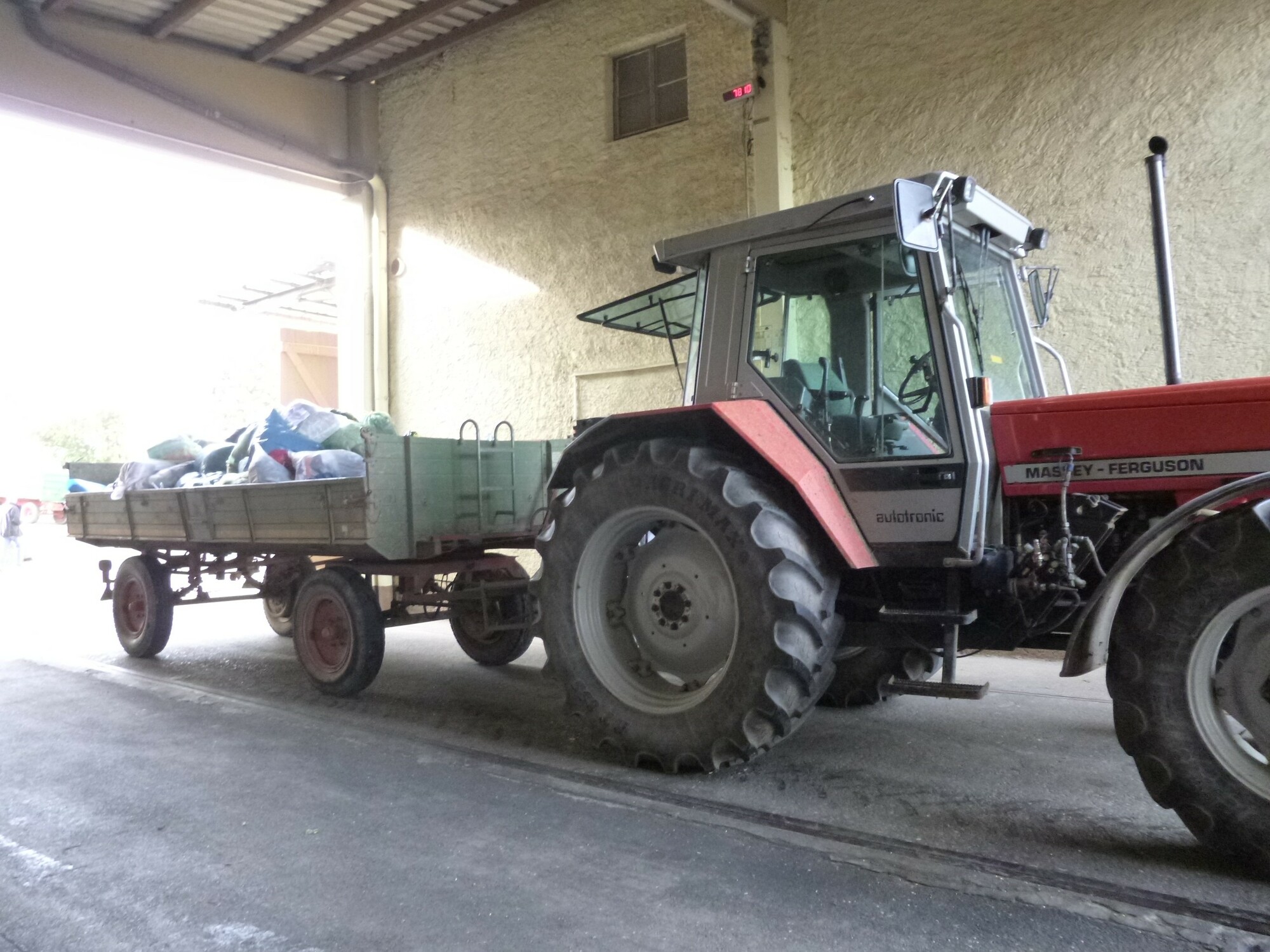 Rund ging es ab 8:30 Uhr in Gaukönigshofen an der Raiffeisenwaage. Alle zehn Ortschaften waren gekommen, um hier ihre Kleider abzuwiegen und sie dann in die bereitgestellten „Brücken“ einzuladen. Eine kleine Brotzeit gab es für die geleistete Arbeit auch.