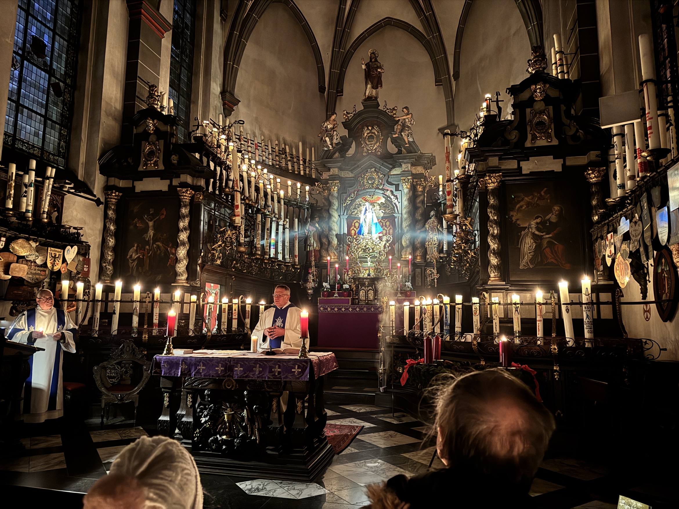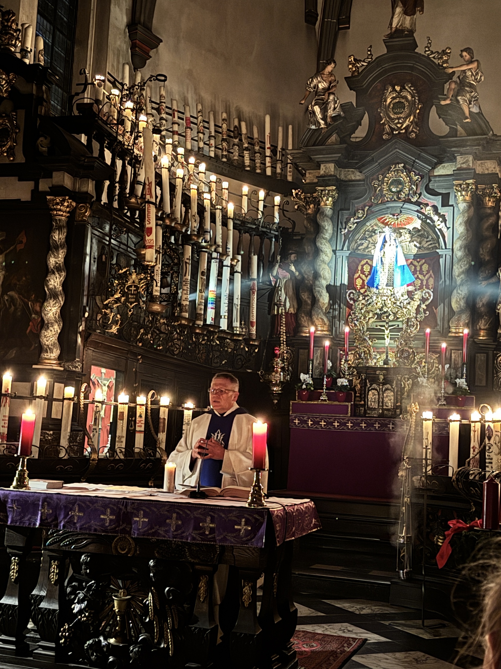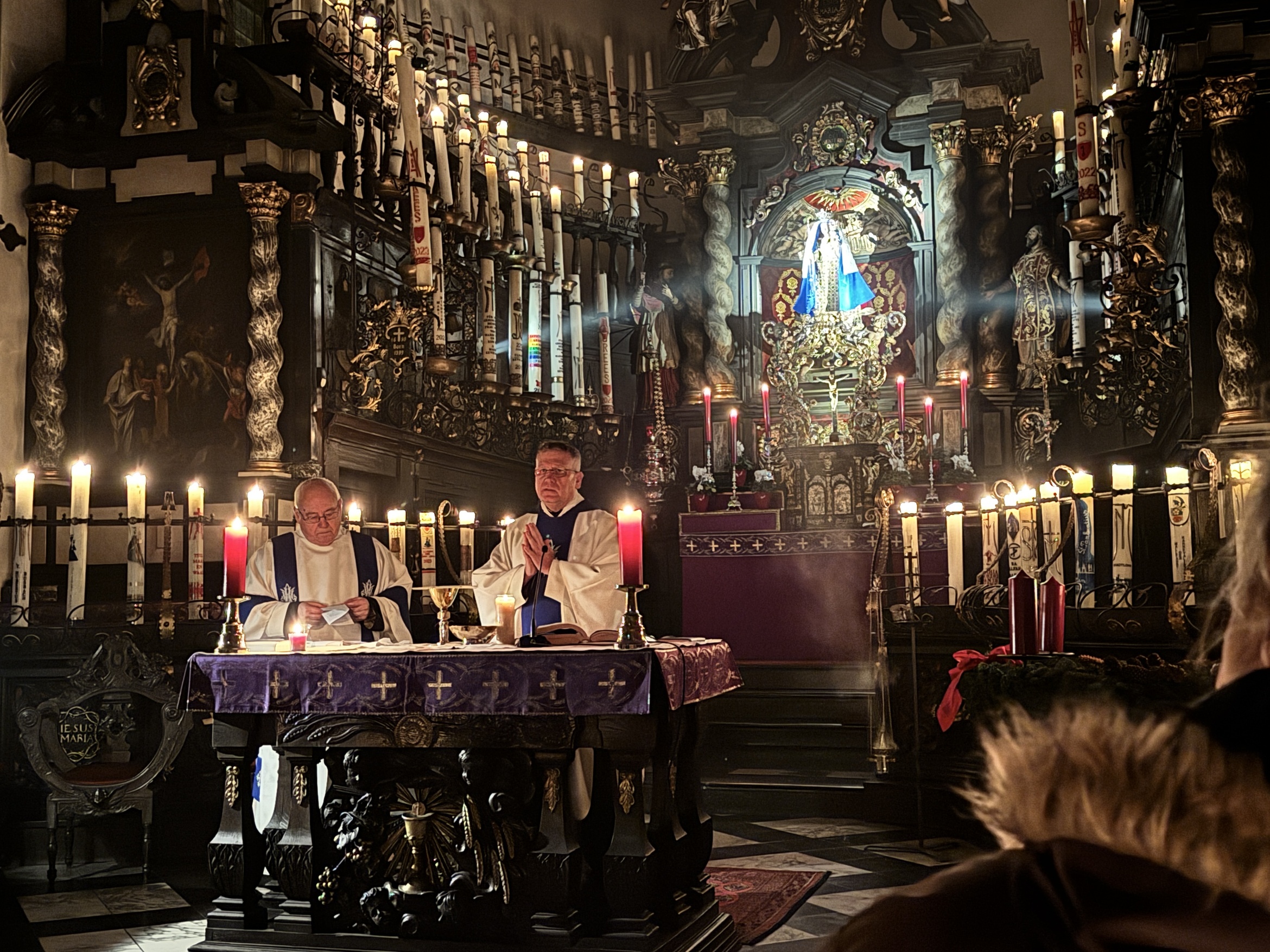 In der Kerzenkapelle feierten die Pilger eine eindrucksvolle Roratemesse im Kerzenschein. Stadtpfarrer Frank Mathiowetz widmete seine Predigt der Bedeutung und dem Charakter der Adventszeit. Er stellte den Gläubigen die Gottesmutter als Vorbild des Glaubens und des Gottvertrauens vor Augen.