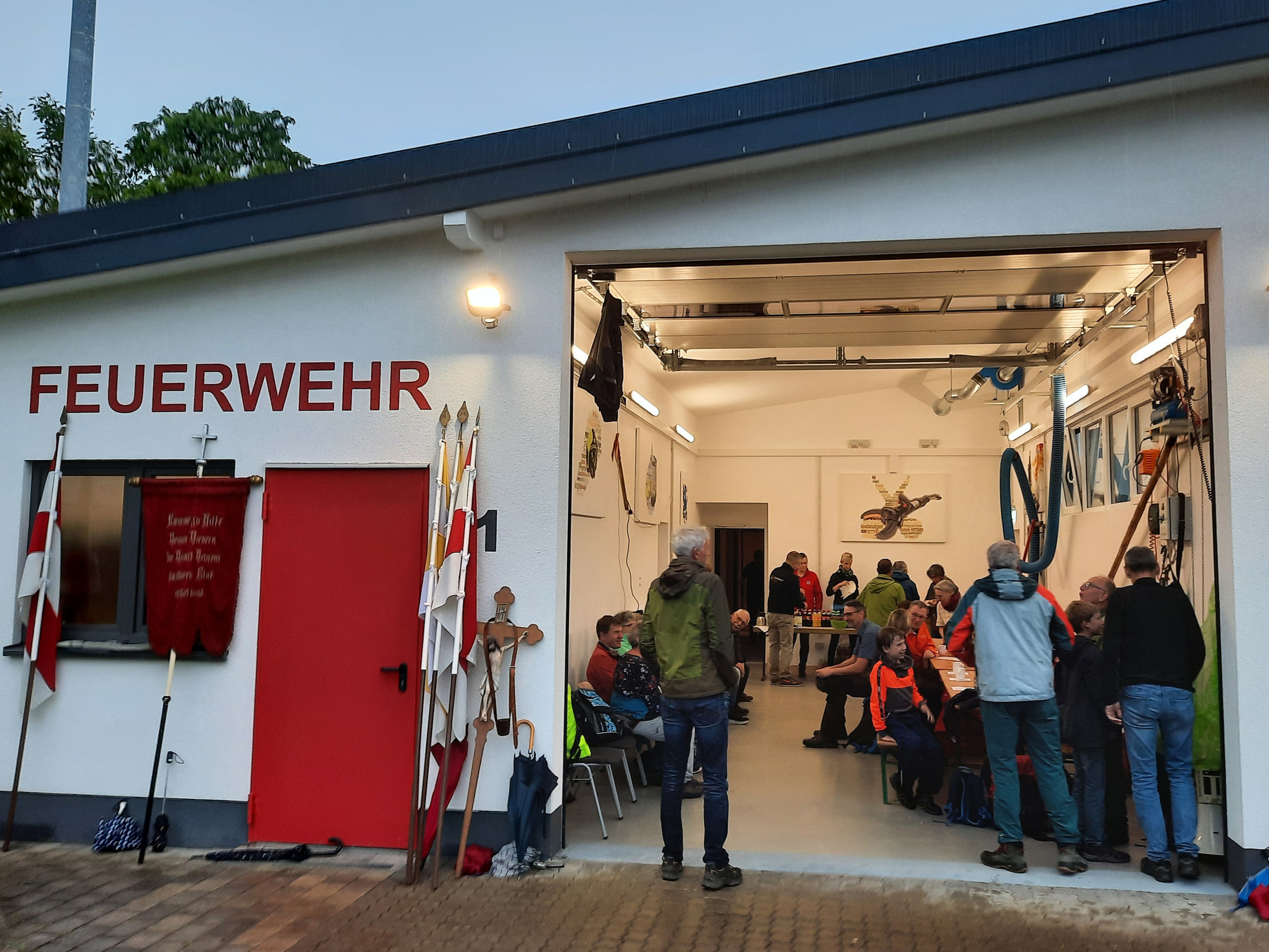 In den vorangegangenen zwei Jahren hatten die Wallfahrer den Sonnenaufgang bei der Rast am Landgasthof Linde in Gerolzahn als Naturerlebnis genießen können. In diesem Jahr hatte der Regen beim Weitergehen ab Wenschdorf nur kurzzeitig nachgelassen. So waren die Wallfahrer dankbar für die freundliche Aufnahme im Feuerwehrhaus und im Bürgersaal in Gerolzahn, wo die Feuerwehr mit belegten Brötchen, Laugengebäck, Kuchen, Kaffee und verschiedenem anderen Angebot bestens für eine Stärkung der Wallfahrer gesorgt hatte. Paul Platz sagte den Kameraden dafür herzlichen Dank, der auch an dieser Stelle nochmals ausgesprochen werden darf.