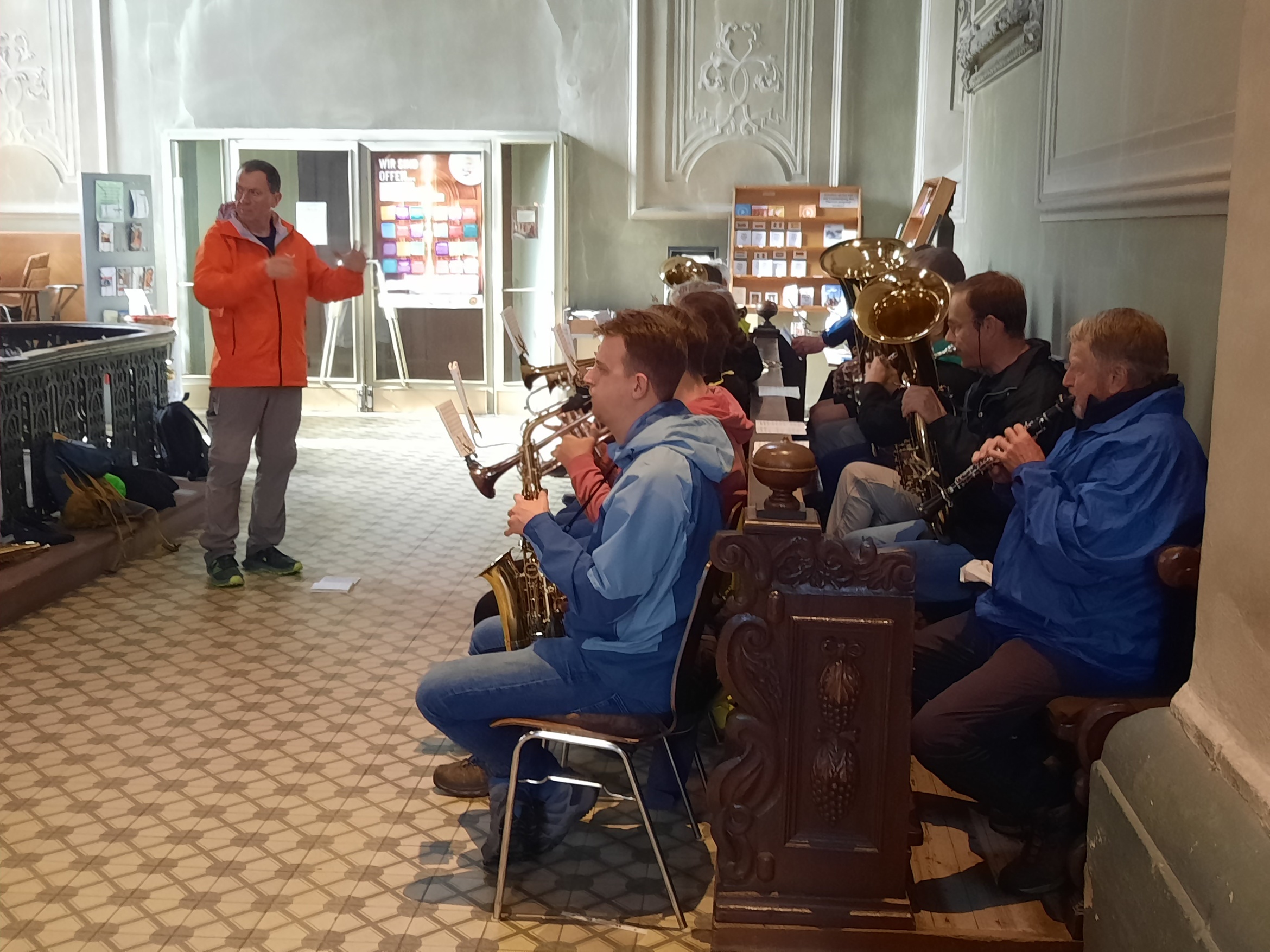 Neben den Instrumenten der Musiker war dem Regen leider auch ein weiteres wichtiges Instrument zum Opfer gefallen: Der Lautsprecher versagte zunächst ab Wenschdorf, dann wieder ab Gerolzahn seinen Dienst. Die Vorbeter, Paul Platz und Christoph Reichert mussten also den doppelten Ausfall kompensieren und wurden dabei von Norbert Weigl unterstützt. Auch dafür herzlichen Dank!