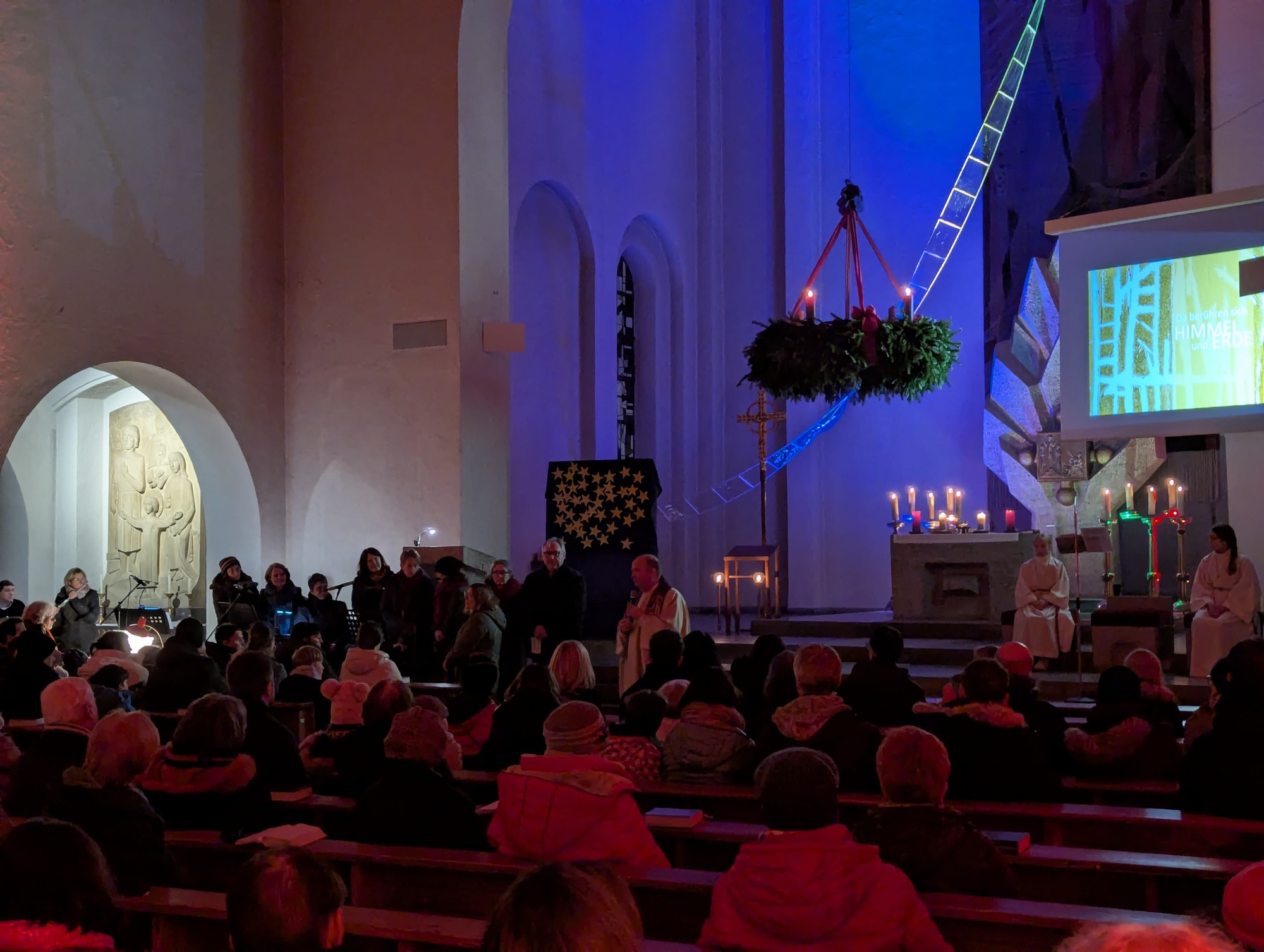 Musikalisch übernahmen „Cantiamo“ und die Musiker von „Heilichs Blechle“ die Aufgabe, den Gottesdienst einen stimmungsvollen Rahmen zu geben. Bereits zu Beginn stellten die Erzieherinnen und Kinder der KiTa ULF dar, wie das Licht im Advent in die dunkle Welt kommt.