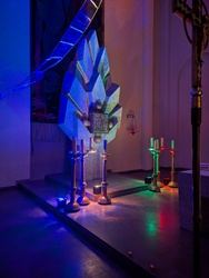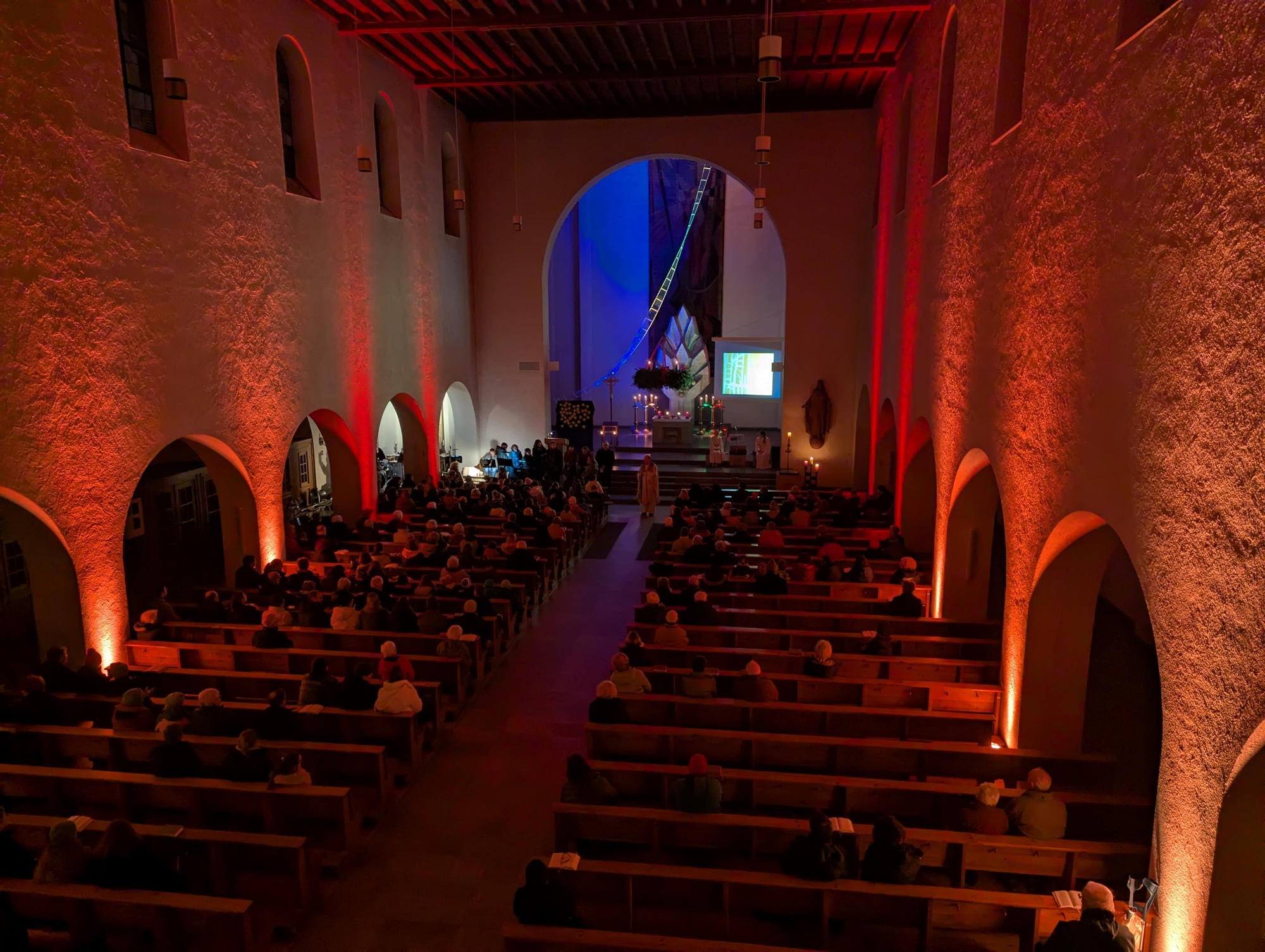 Max Meder hob die Botschaften durch beeindruckende Lichteffekte in der Kirche hervor, über die nach dem Gottesdienst noch lange im Pfarrhof gesprochen wurde.