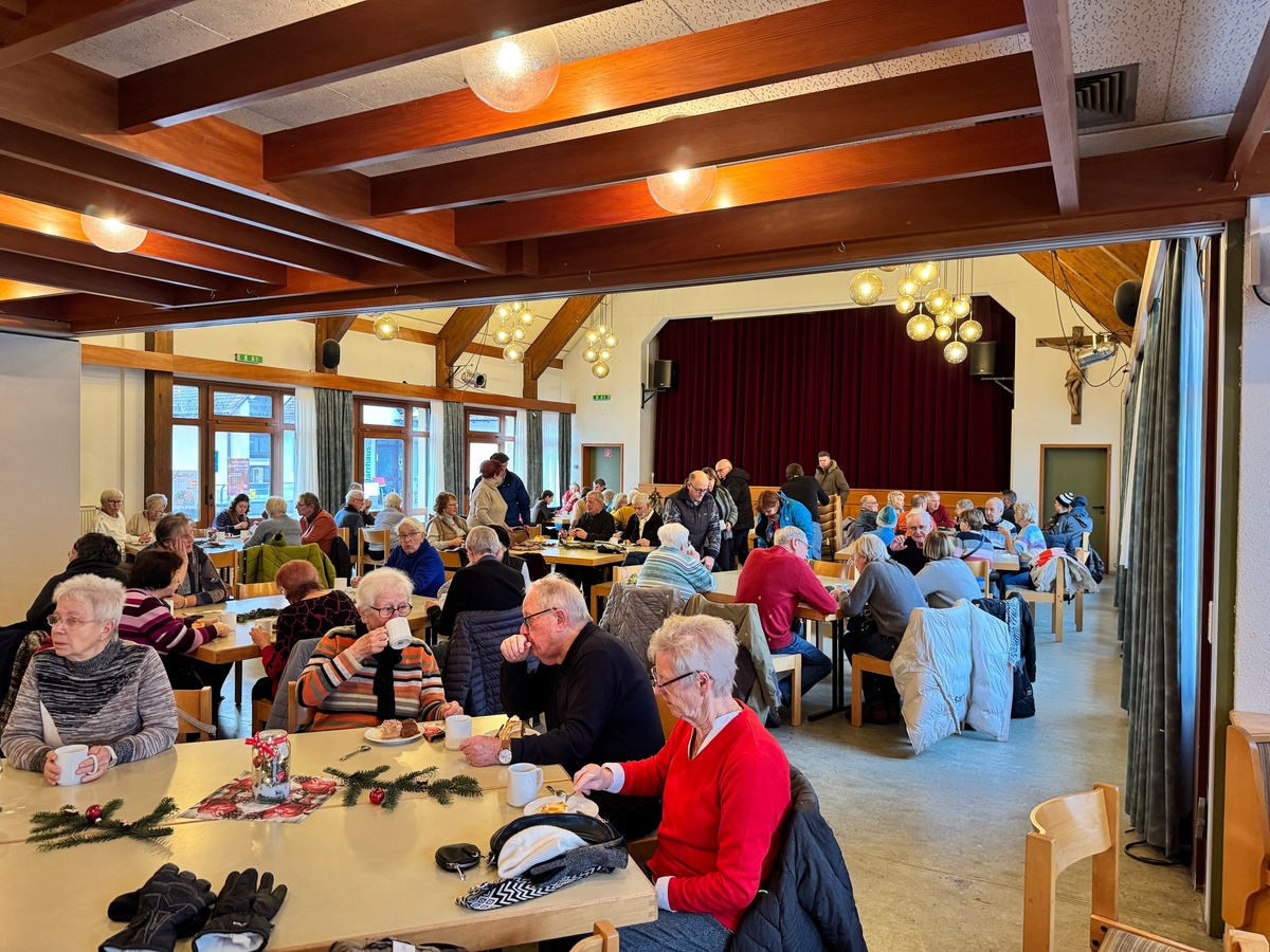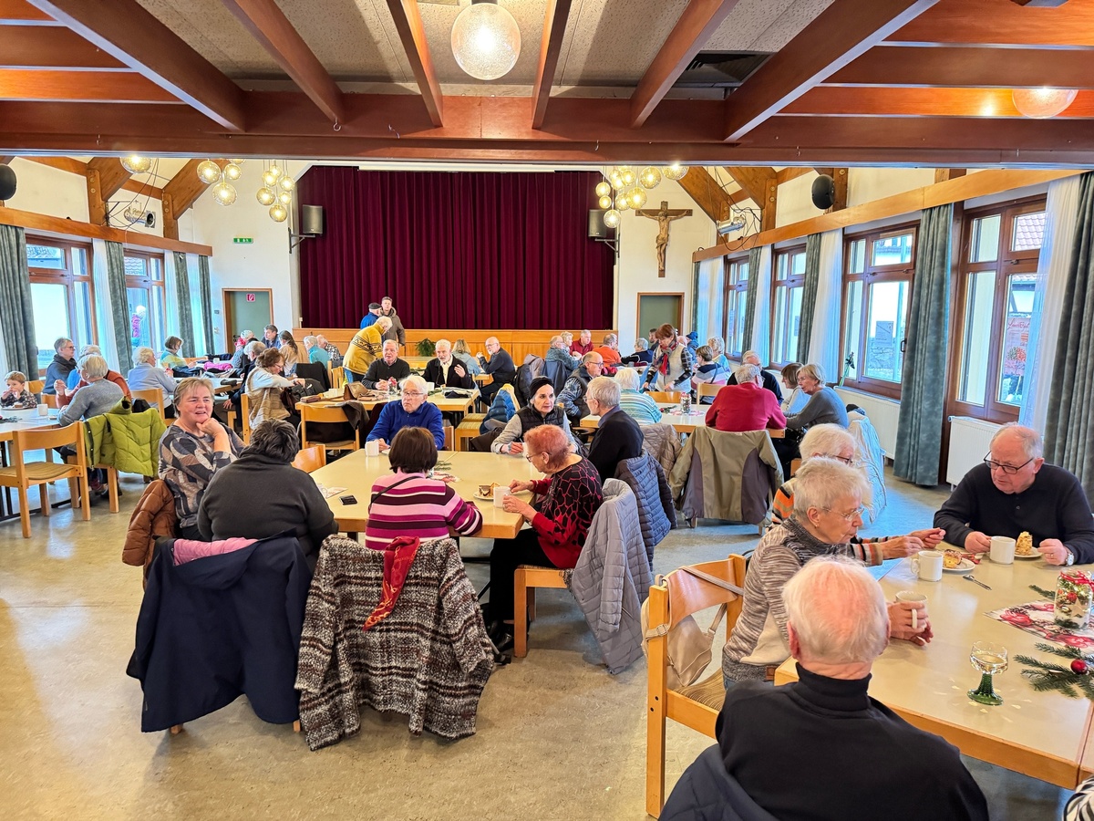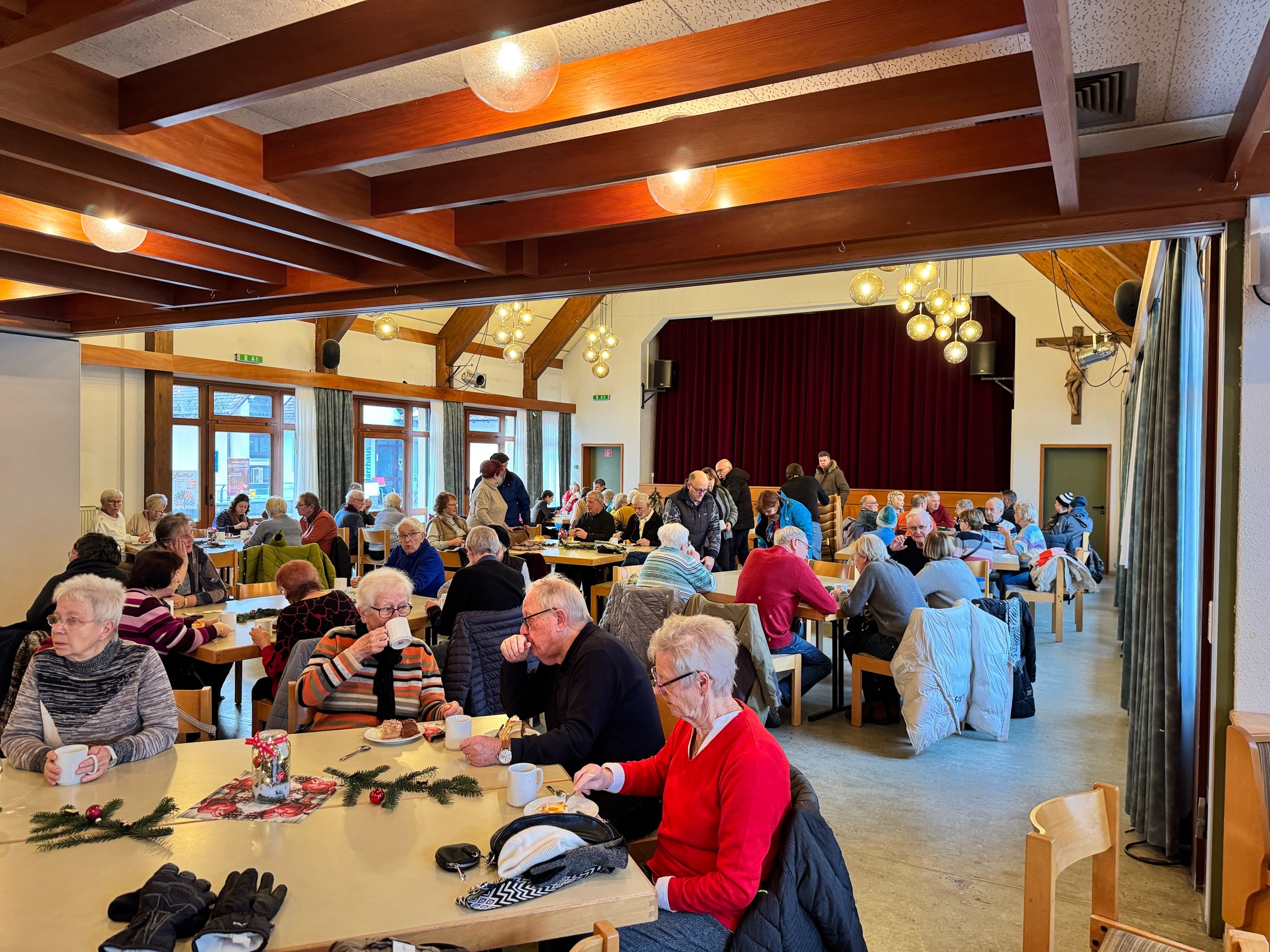 Die Besucher wurden mit einer großen Auswahl an selbstgebackenen Kuchen und Torten verwöhnt. Von klassischen Sorten wie Apfelkuchen und Schwarzwälder Kirschtorte bis hin zu ausgefalleneren Kreationen war für jeden Geschmack etwas dabei. Nicht nur das Kuchenbuffet trug zur einladenden Atmosphäre bei, sondern auch die liebevolle Tischdekoration, die den Gästen ein festliches Ambiente bot. Mit viel Engagement sorgten die Helferinnen und Helfer dafür, dass sich die Besucher wohlfühlten und in gemütlicher Runde eine Auszeit vom Trubel des Weihnachtsmarktes nehmen konnten.