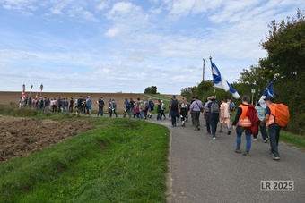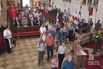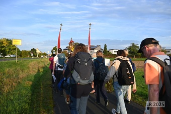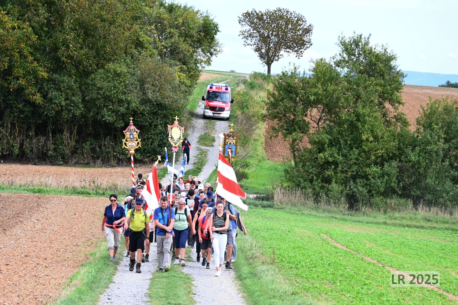Aus den Orten der Pfarreiengemeinschaft beteiligten 65 Gläubige am Fußmarsch bei Temperaturen bis zu 24 Grad Celsius.