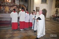 Die Wallfahrer begrüßte der Dettelbacher Pfarrer Nicolas Kehl mit Weihwasser und sie umrundeten diesmal vor der Messe traditionell dreimal den Gnadenaltar. Domvikar Paul Weißmantel zelebrierte um 14 Uhr den Gottesdienst und griff in seiner Predigt das Thema Hoffnung auf. Konzelebrant war Pfarrer Erich Hauck aus Chile, der sich zu einem Heimatbesuch in Brünnstadt aufhält. Weitere Gottesdienstbesucher kamen mit dem Auto, so dass an der Messe rund 170 Gläubige teilnahmen.