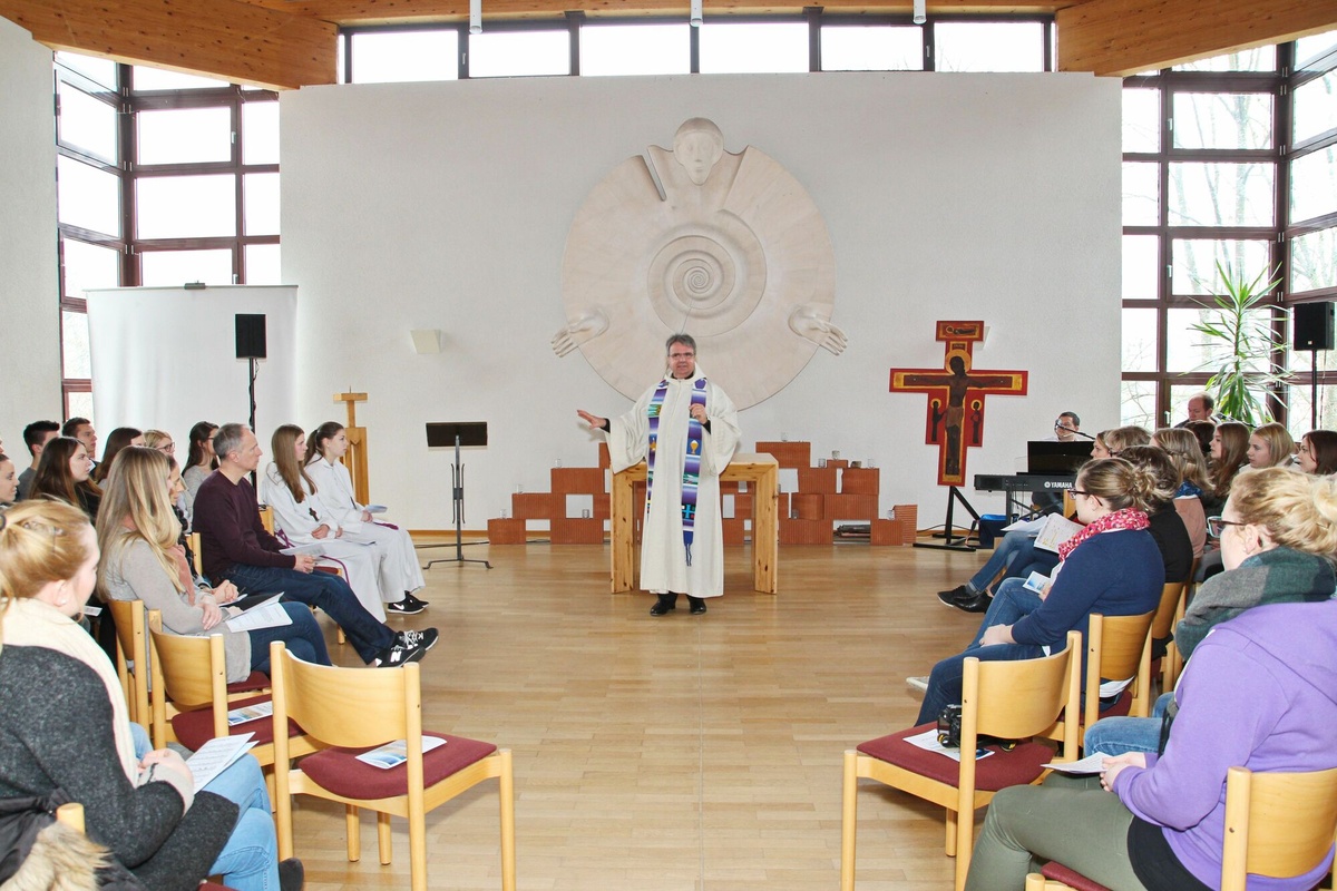 Der Azubitag fand zum neunten Mal und unter dem Motto „Die Vielfalt des Kennenlernens“ statt. In Workshops bekamen die jungen Teilnehmer Einblicke in die verschiedenen Möglichkeiten des Kennenlernens, sowie in den Aufbau, die Förderprogramme und das Zusammenleben im Kinder- und Jugenddorf. Domkapitular Clemens Bieber, Vorsitzender des Diözesancaritasverbands, eröffnete den Tag mit einem Gottesdienst in der Kapelle des Kinderdorfs. Zur thematischen Einführung wurden die Jugendlichen mit den Fragen „Woran denkst Du gerade? Was tut Dir gut? Wofür nimmst Du Dir Zeit?“ konfrontiert und dachten in einer Zeit der Stille darüber nach. Bei Spielen wie dem „Kennenlernbingo“ mit Domkapitular Bieber und der „Fragentombola“ lernten sich die Teilnehmer immer mehr kennen und konnten eigene Fragen und Themen ansprechen. In einem Planspiel mussten sie dann in kleinen Gruppen an verschiedenen Stationen Fragen zum Kinder- und Jugenddorf beantworten. Der Nachmittag war mit den verschiedenen Workshops gestaltet. In zwei Runden konnten die Jugendlichen in Workshops unter anderem beim Klettern ihre eigenen Grenzen kennenlernen, Stress abbauen, einen eigenen Kaffeebecher gestalten oder im Zirkus eine andere Seite an sich entdecken.