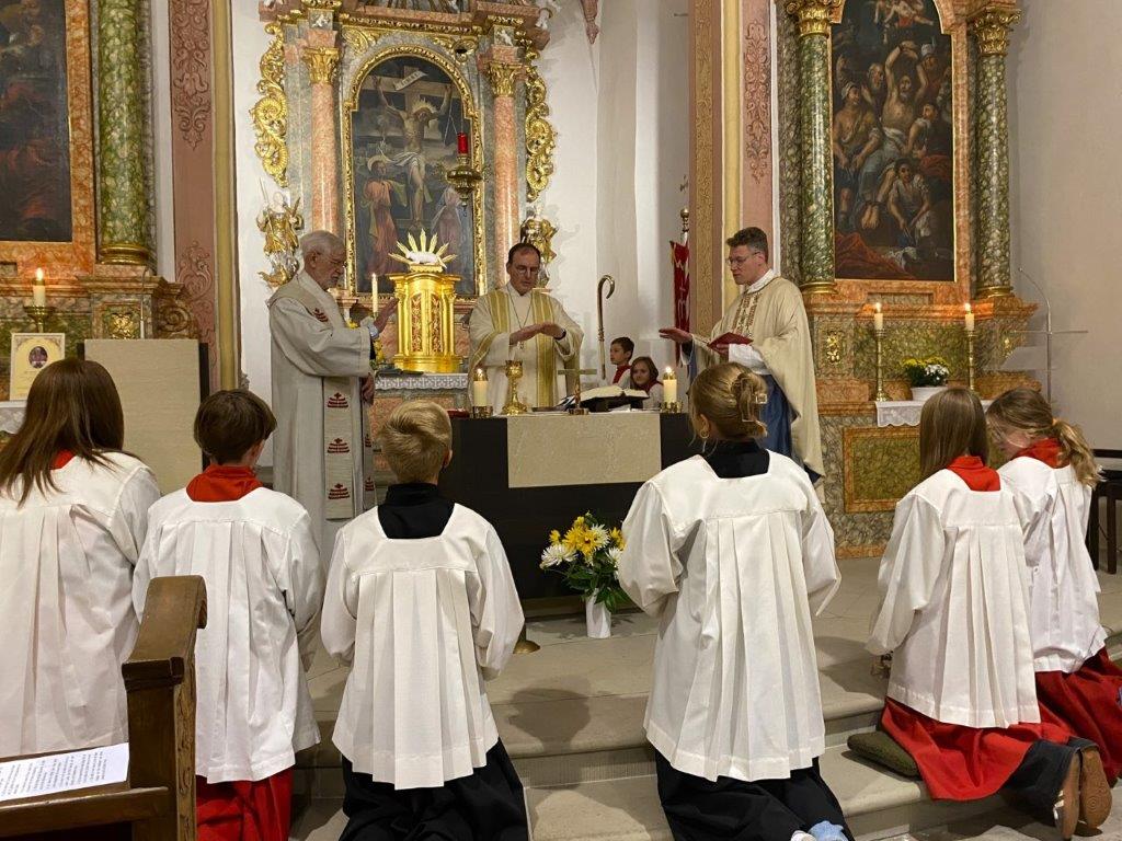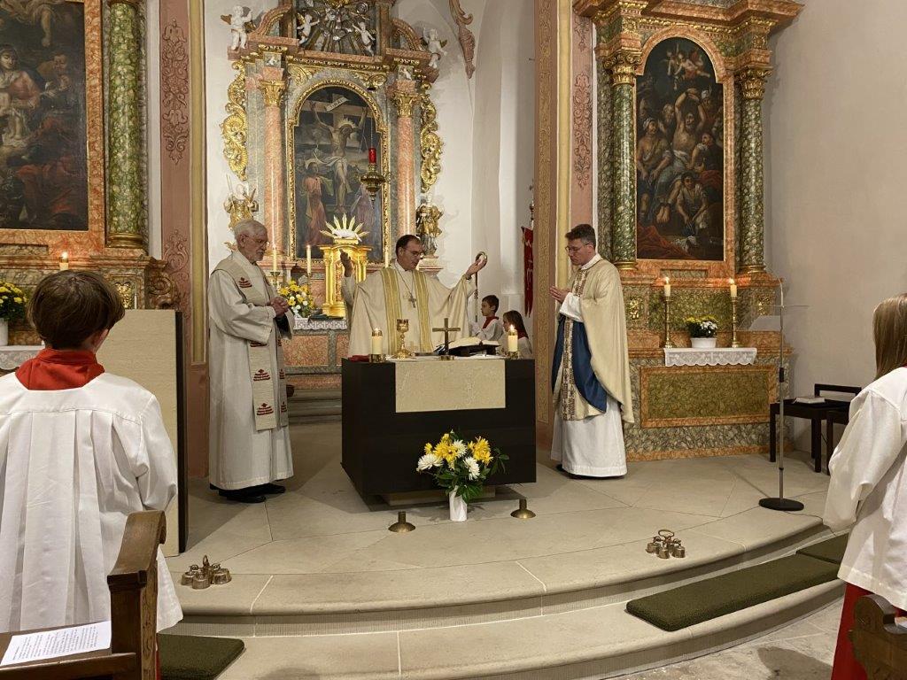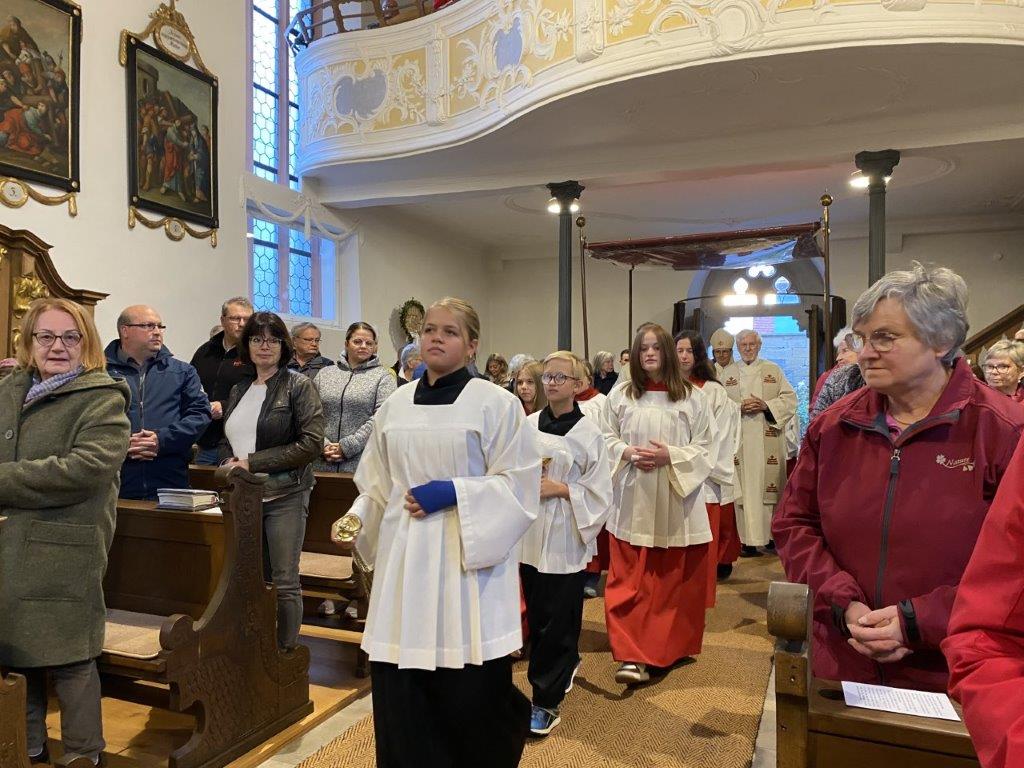 Die gemeinsamen Gesänge, an der Orgel begleitet von Christine Bauer, und die zahlreichen Ministranten trugen zur Festlichkeit der Messe bei. Der Blick auf P. Pius Keller und die eindrucksvolle Verkündigung ließen die Gläubigen bestärkt für ihren Glaubensweg nach Hause gehen.